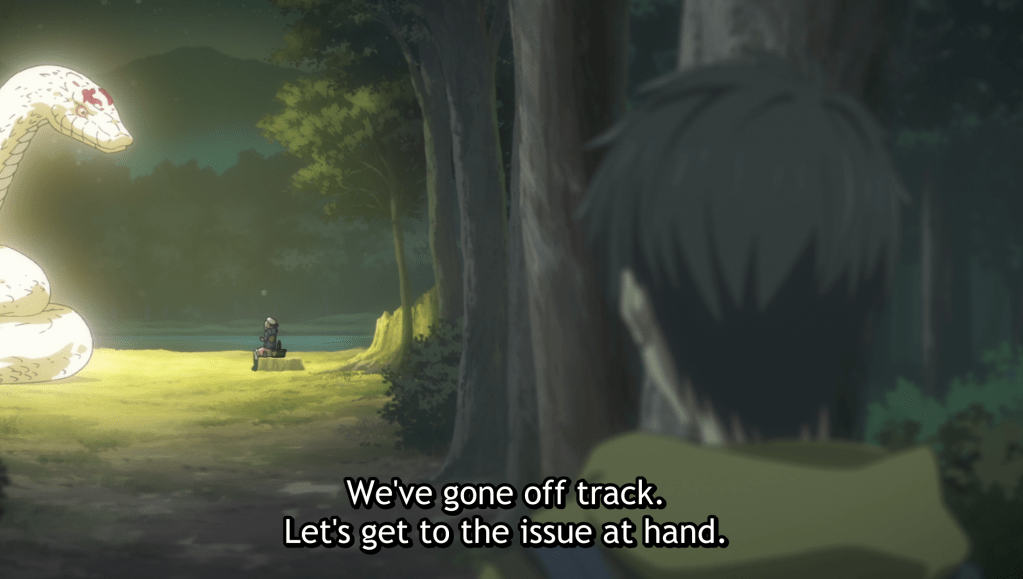 Kotoko is asked to come to the nearby mountains where a giant serpent yokai dwells. This serpent needs advice and Kotoko is the only one who can answer the serpents questions.