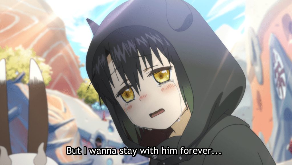 She starts to cry and tell Kilia that she thinks that Golem is trying to get rid of her and end their journey as soon as possible. But she doesn’t want to ever leave him.