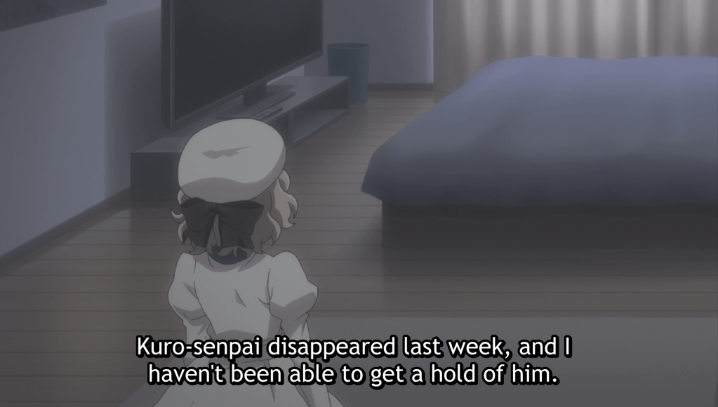 After questioning Kotoko about Kuro’s whereabouts and their relationship, Kotoko eventually reveals that Kuro has disappeared and has not responded to Kotoko’s calls in some time.