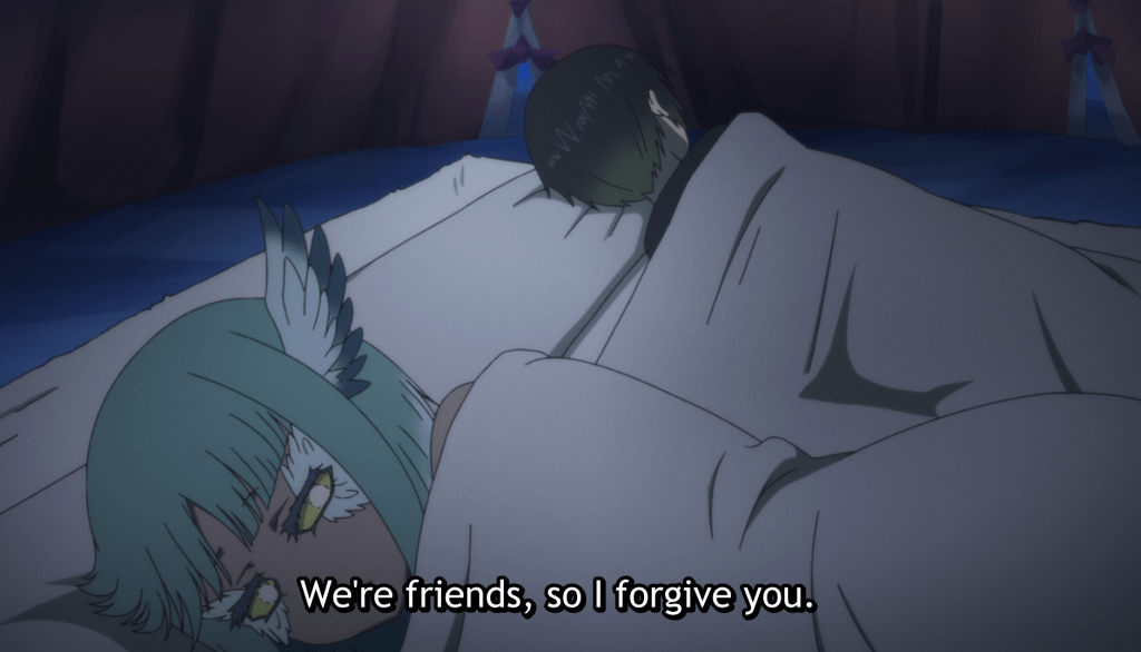 Though she wants to save Haitora’s life, it seems Uzoi has grown close to Somali and cannot kill her to save Haitora. Uzoi apologizes for her actions.
