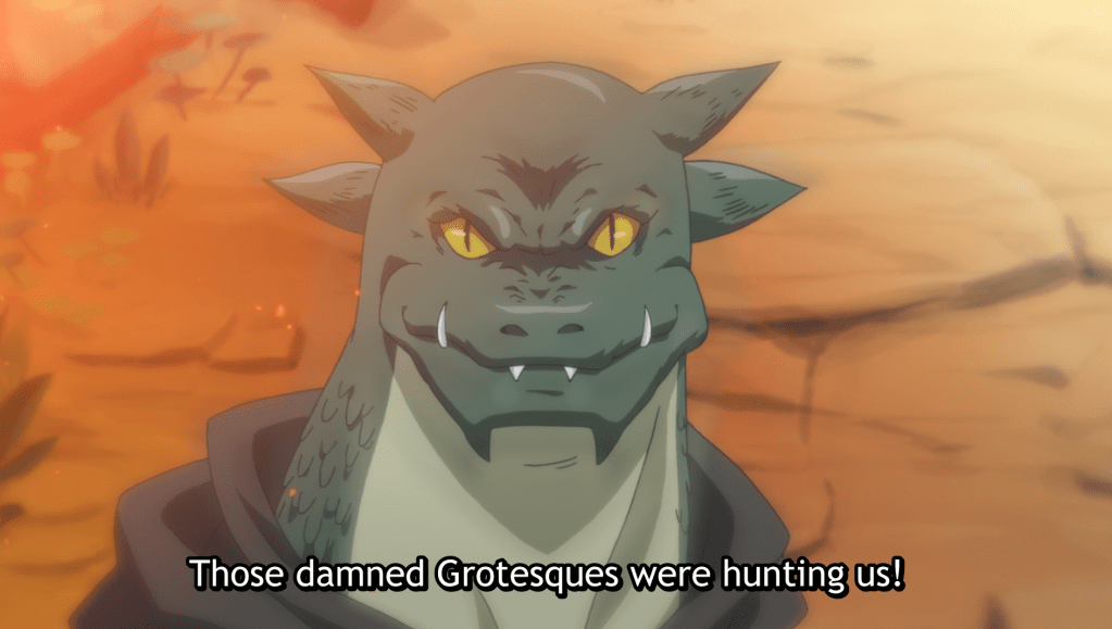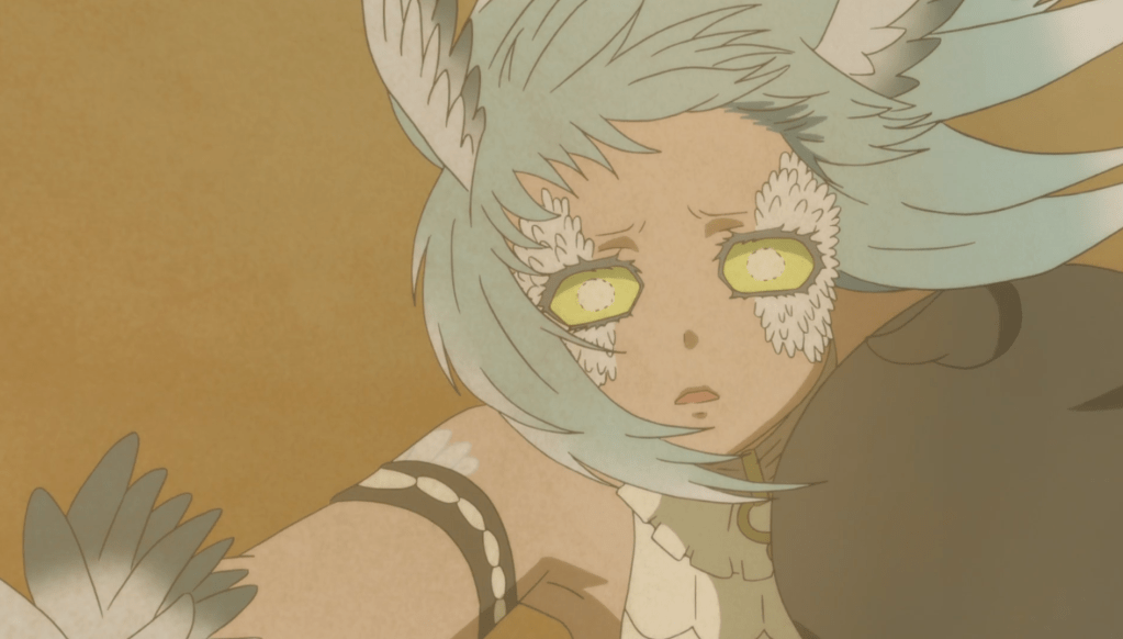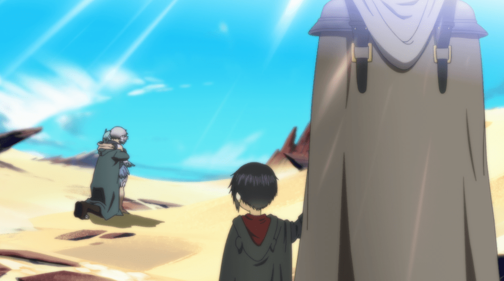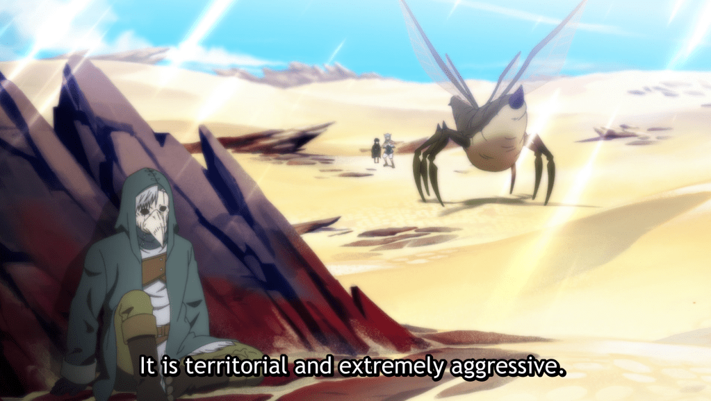 Golem, Haitora, Somali, and Uzoi continue their journey across the desert. Luckily, the awkwardness of last nights confession was interrupted by a sand tornado. Uzoi and Somali hang onto the wagon, while Haitora tries to grab them. As Haitora tries to grab Uzoi, she looks at him with such betrayal in her eyes and refuses his hand.