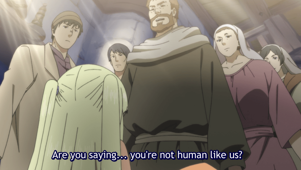 And of course, we can all figure out what is going to happen with this: Feodora reveals that she is a witch, saves Miya, and the villagers turn on Feodora because she is a monster in their eyes.