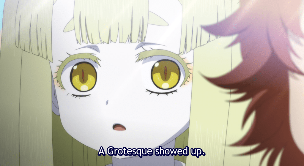 Just then the village bell sounds. Feodora asks what is happening, in which Miya replies that a Grotesque, a monster, has appeared.