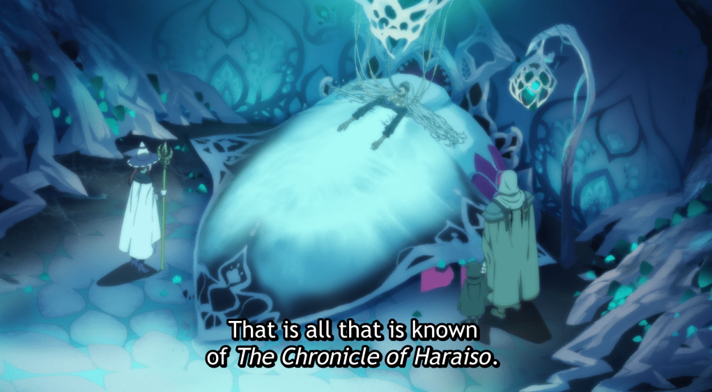 She begins to tell Golem and Somali the tale of the book and story of Haraiso.