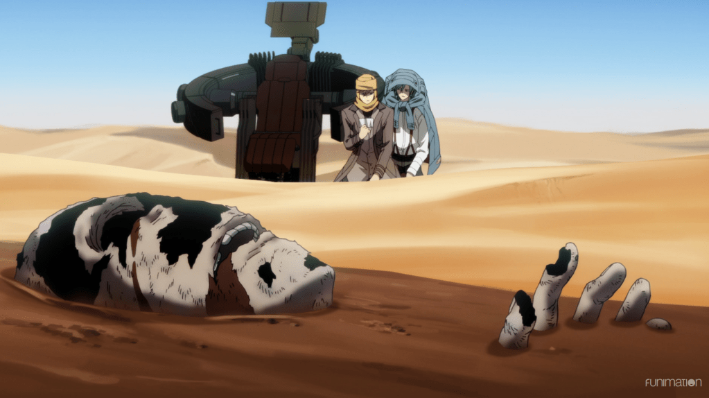 The world around Narihisago and Hondomachi began erasing itself. Hondomachi explains that the world has become unstable with the presence of both of them. They both wonder what will happen to them as the Id well deconstructs with them in it, but then Narihisago is ejected and brought back to the desert wasteland and becomes Sakaido once again.