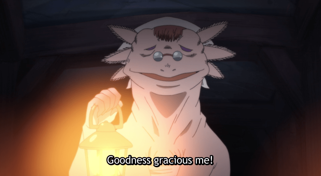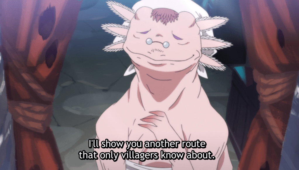 This is Golem and Yabashira’s last day working as bodyguards. The innkeeper’s wife approaches them and make idle chat with them asking when they are leaving and what route they would be taking. She then tells Golem that she knows of a safer route that only the villagers know that is much safer.