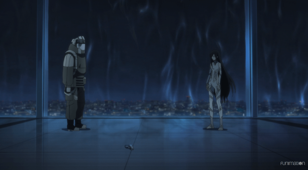 Momoki struggles to make his way to Kiki Asukai, as her abilities have grown stronger to point that Momoki’s suit is having limited effect. Momoki finds Kiki Asukai staring out into the real world. She has been trapped acting as the catalyst for the mizuhanome and continuously being killed for a long time.