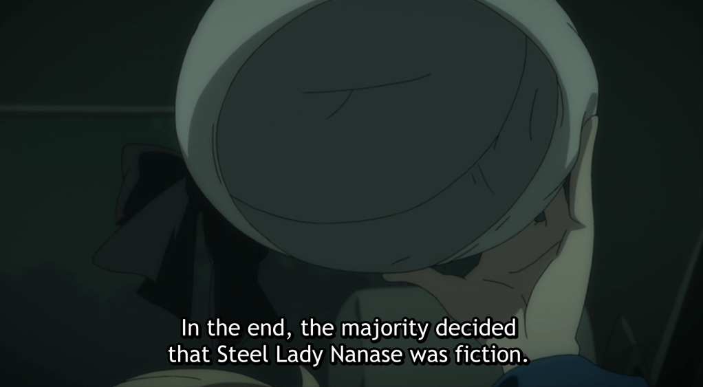 With Iwanaga’s final solution was a success as the people of the forum started to cling to the idea of Karin Nanase being alive and not the Steel Lady Nanase.